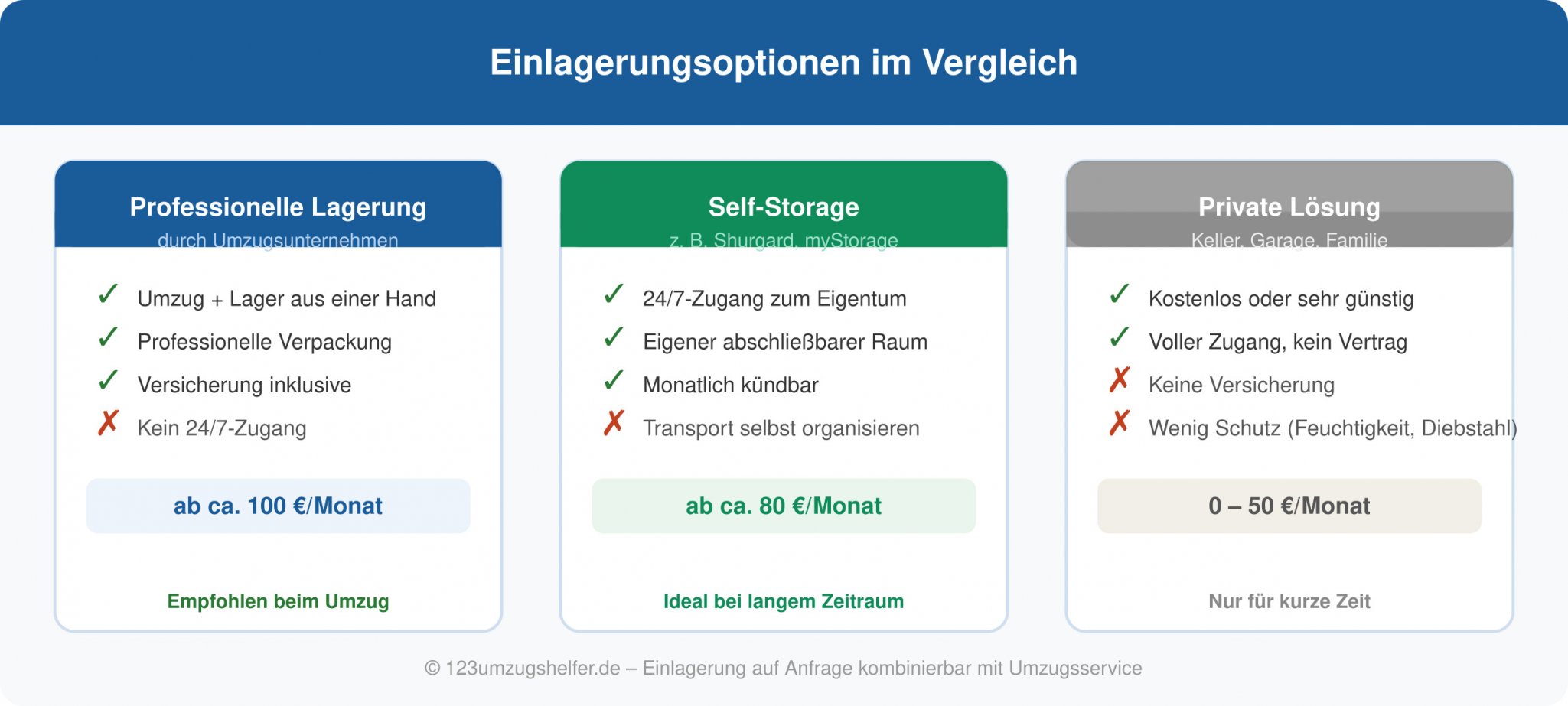 - • Oft etwas teurer als Self-Storage