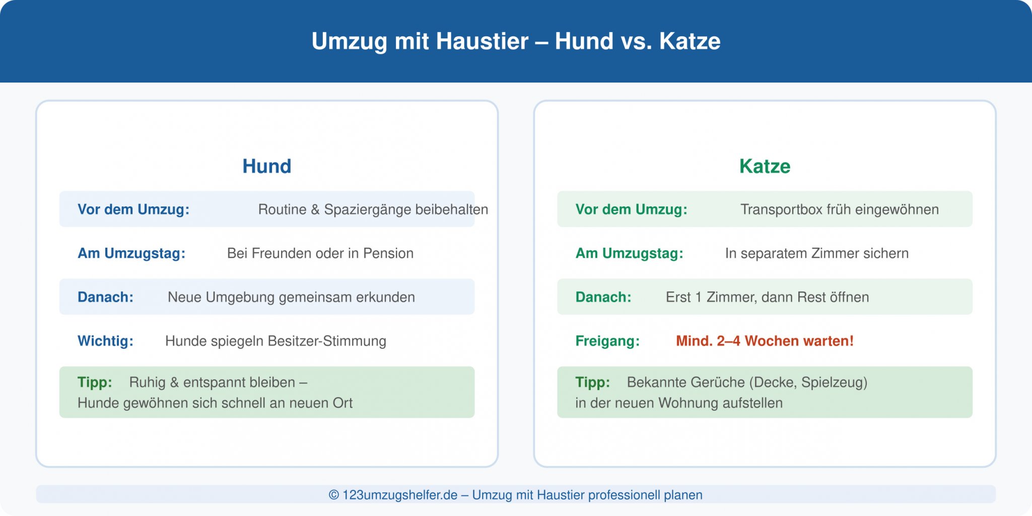 ⚠️ Auf keinen Fall freilaufen lassen! In der Aufregung des Umzugs besteht akute Fluchtgefahr – besonders bei Katzen und kleinen Hunden.
