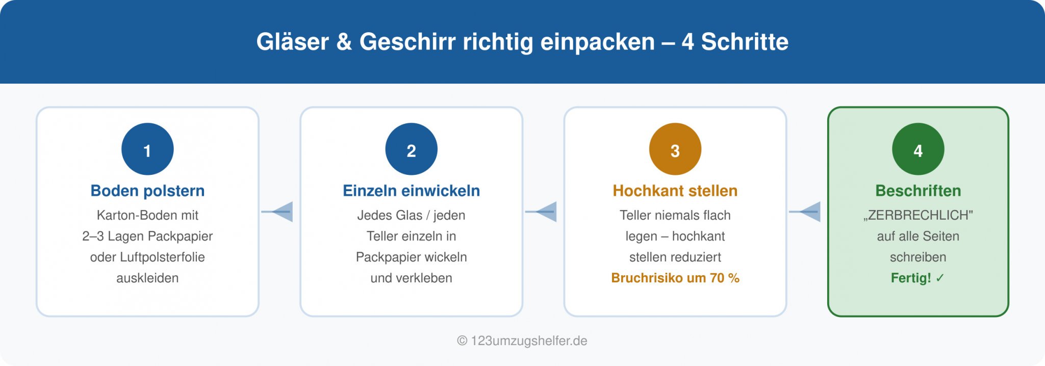 - • Zerbrechliches nicht einzeln einwickeln → klassischer Bruchschaden